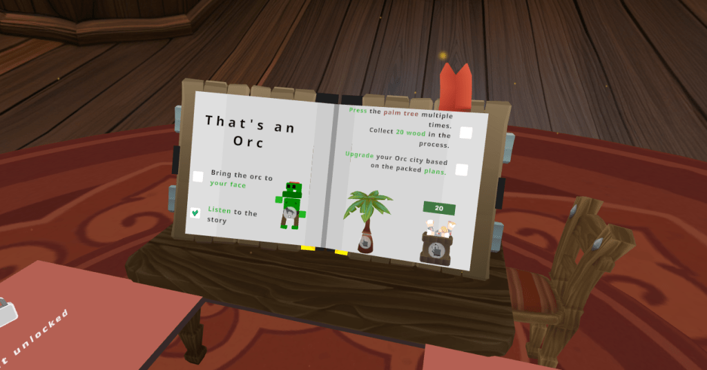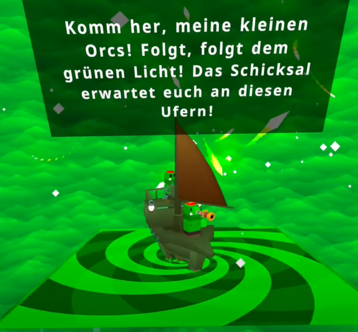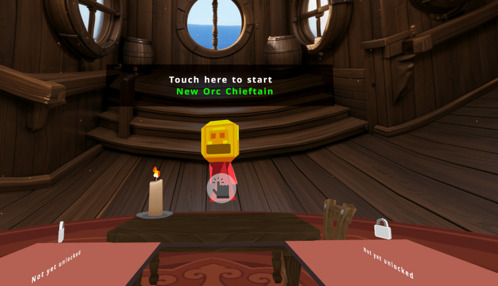 Each player starts inside the orc ship. You, as the future chieftain, receive some information about the orcs and the basic interactions within Orcs Up! VR.