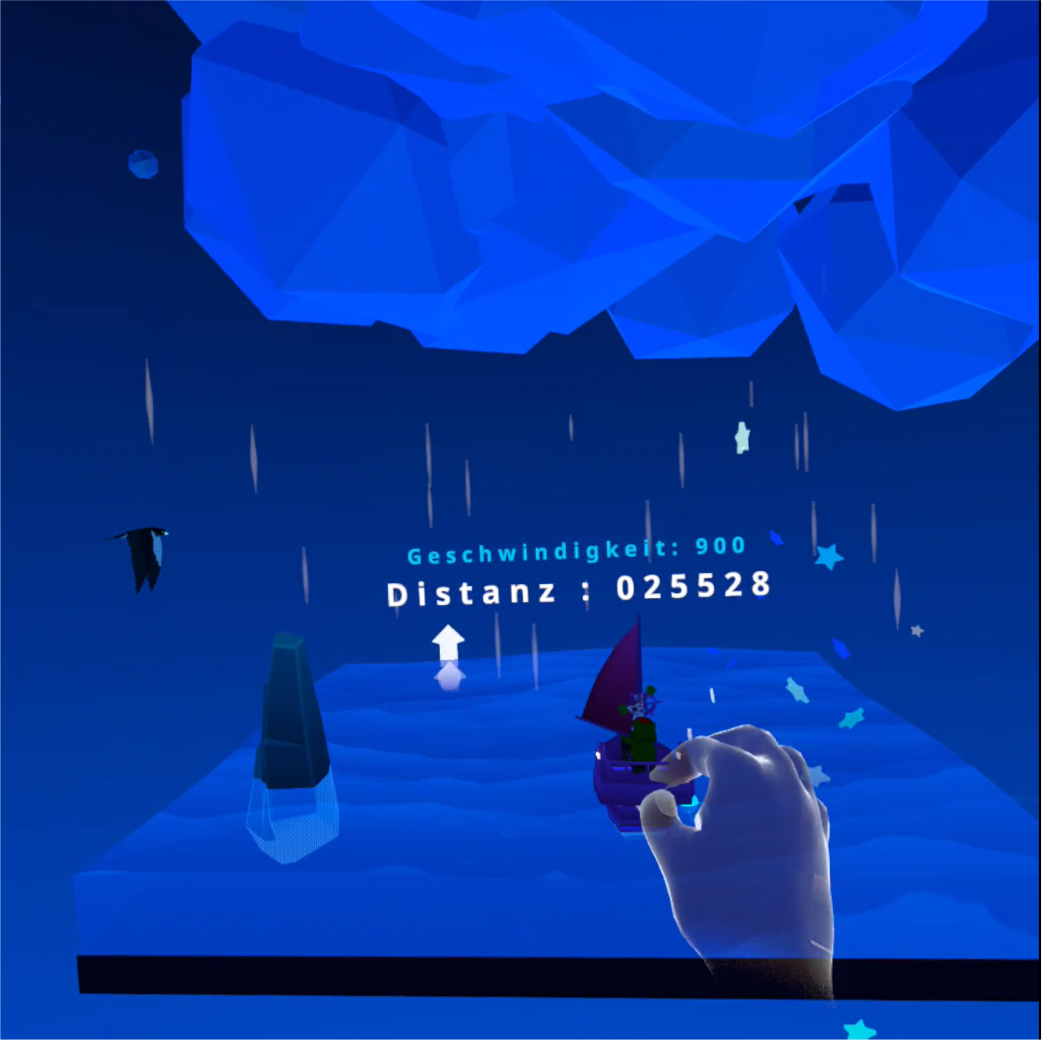 Introduce dynamic hand-based controls (steering the ship) that build on what the player just learned. This tests their skills in a fun and memorable way without overwhelming them.