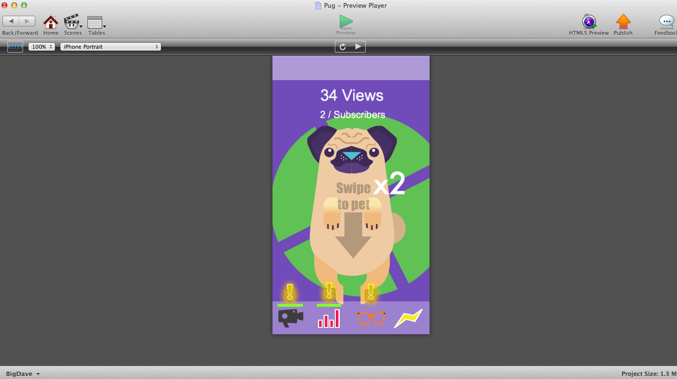 Creating a „make it rain“ like Pug petting game for the iPhone with Sabba Keynejad.