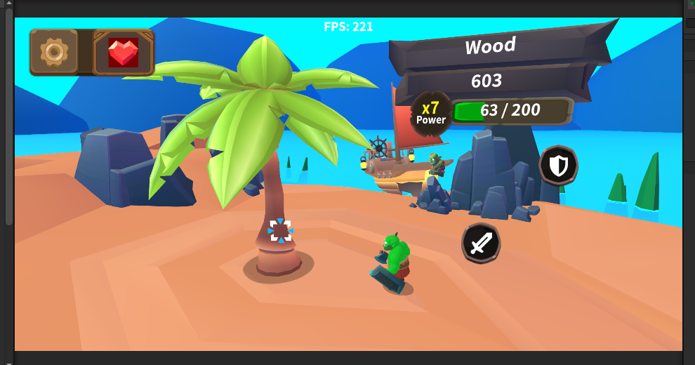 The UI for chopping has its first draft but Sebastian Irmer makes us some nicer wooden board soon. Chopping levels up a multiplier on the base weapon damage on the tree.
