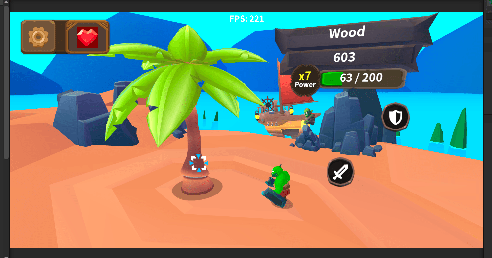 The shader for the palm, ship and the player has now more emissive power.